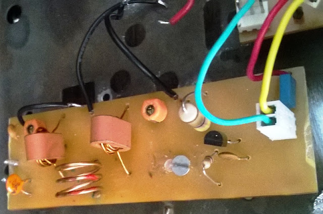 Algo no andaba bien en estos inductores. Por supuesto y por el método de "Descarte" era de esperar que L3 no debería traer mayor consecuencia por ser de núcleo de Aire y pocas espiras, por lo que la sospecha se acercaba a los otros dos inductores, (L1 y L2) Aquí puede observarse la primera experiencia con los toroides de PC. No los recomiendo para esta Ocasión.De igual modo llegar a la solución de esta incógnita fue bastante sencillo y rápido. Por suerte contaba por algún lugar perdido de los cajones del tallercito con unos núcleos bastante pequeños de color anaranjados o rojizos que alguna ves me regalaron como atención como parte en una compra de válvulas. Debo confesar que nunca imagine que me irían a servir. Pero efectivamente como dice el dicho (Como anillo al Dedo). Fue notable el cambio y el aumento de rendimiento de la etapa pre selectora sin mayor reniego.